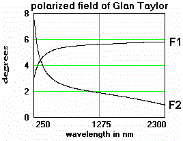 Karl Lambrecht Corporation的格兰泰勒棱镜由两个方解石棱镜组成,长度与光圈大小比值约为1。提供UV方解石选型。10mm厚的方解石片在250nm波段有50%透射率,光谱范围250nm-2300nm,低于250nm取决于晶体与晶体间的截止波长。