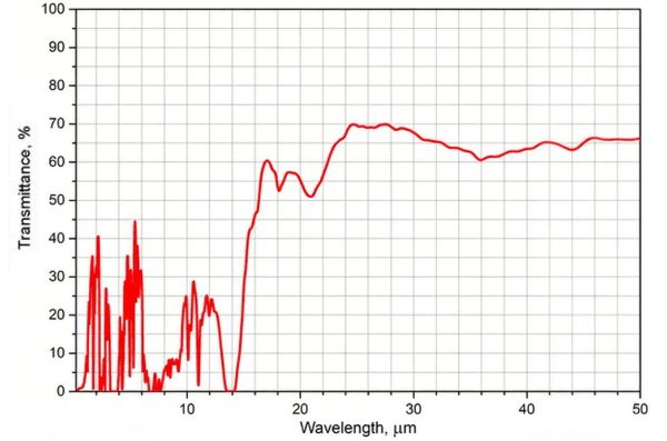 HDPE是轻的弹性晶体材料。它可以加热到110°C,也可以冷却到-45 ~ -120°C。PE拥有良好的介电特性,防腐蚀性和抗辐射性。但是,它在紫外波段和油腻的环境下不够稳定。在生物学上来讲,PE很不活跃,很容易处理。在23°C下密度为0.91-0.925 g/cm3,张力流限为8-13 MPa,弹性模数为118 - 350 MPa,在很宽的光谱范围内折射率都约为1.54。通常,高密度的polyethylene (HDPE)也来作为组件材料。除了作为厚透镜和窗口镜,薄的HDPE还可用来作为THZ偏振片。